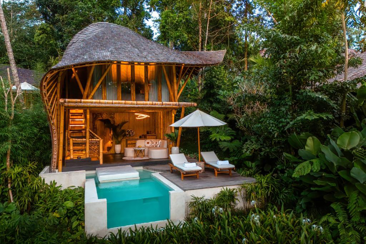 Tucked away in the serene highlands of Tampaksiring, just half an hour from Ubud and minutes from the sacred Tirta Empul Temple, Bambootel Sawah View offers a thoughtful take on modern luxury rooted in genuine Balinese warmth. Set across 1.5 hectares of cascading rice terraces, the resort blends seamlessly into its natural surroundings, inviting guests into an experience shaped by tranquility, culture and connection to the land. The resort features 14 villas and 14 suites across seven categories, each designed with panoramic views of rice fields and jungle canopies. Hand-crafted bamboo architecture, open-air living spaces and soft, earthy interiors create an atmosphere of effortless comfort.
