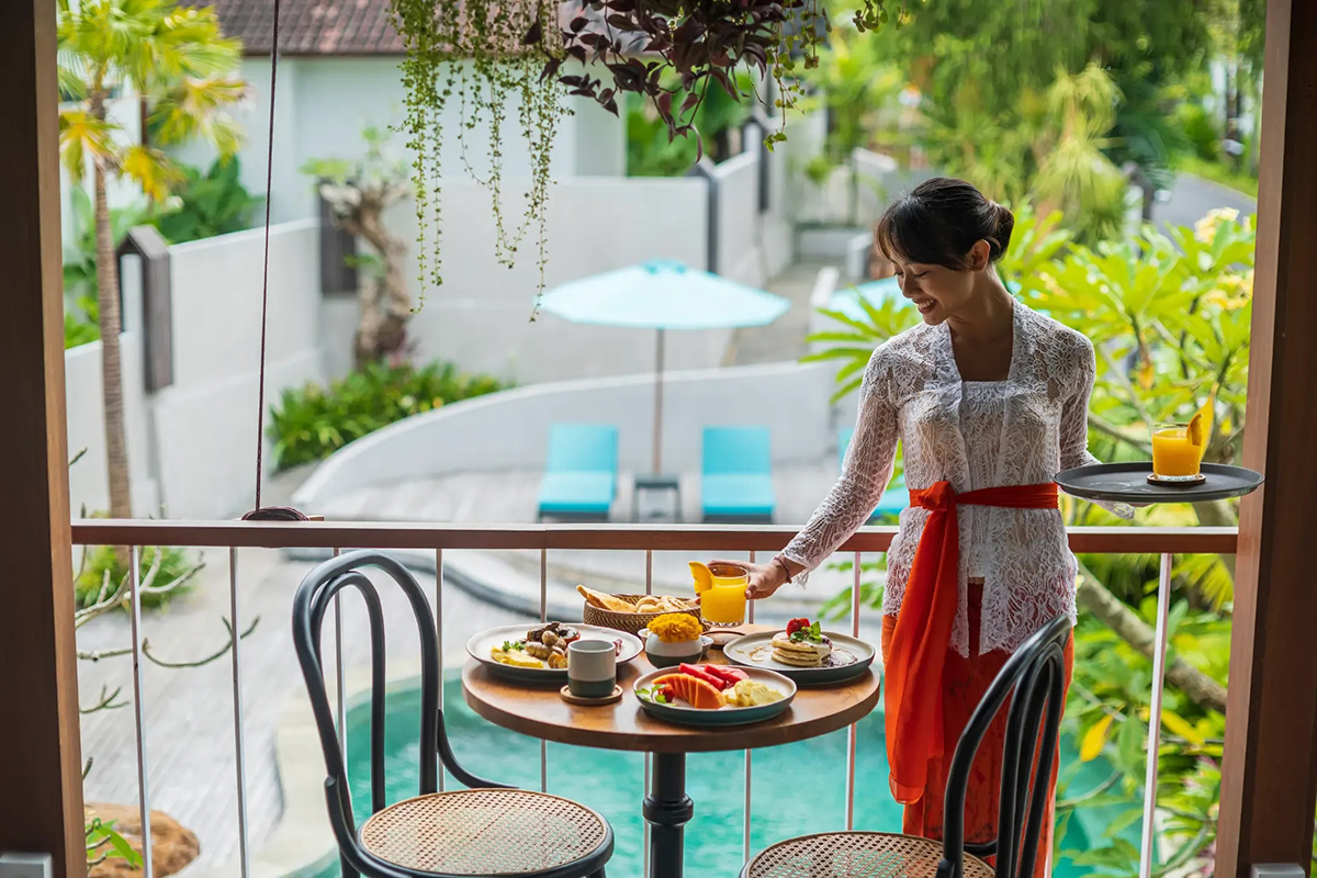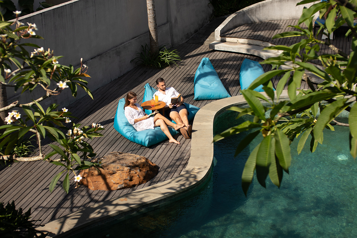 Amid Canggu’s cosmopolitan allure, Ecozy Dijiwa Canggu strikes a seamless balance between urban energy and the tranquillity of nature. This harmony is reflected in its sleek, minimalist architecture, thoughtfully crafted with reclaimed wood to create a restful retreat where understated elegance meets. Each room features a private garden, pool, or patio, inviting guests to bask in the sun while enjoying uninterrupted views of swaying trees. With Blou Café Canggu on-site and picturesque beaches, local art galleries, and chic eateries just moments away, there is no shortage of experiences for those who stay here.