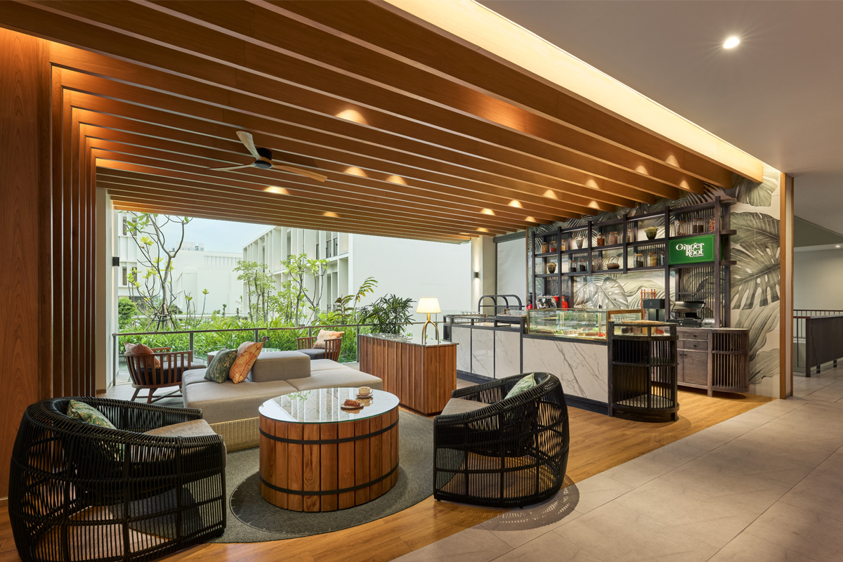 Teh hangat, kopi harum, dan kue-kue lezat adalah resep untuk bersantai sore yang mengundang selera. Di Ginger Root Tea Lounge, pengalaman tersebut diberi sentuhan khas Bintan dengan minuman menyegarkan dan kudapan manis yang menyoroti hasil bumi pulau tersebut. Salah satu contohnya adalah Black Peachy, di mana kopi dipadukan dengan campuran buah persik, nektar madu, dan jeruk Santang lokal untuk rasa yang cerah dan menyegarkan. Minuman ini adalah pasangan yang sempurna untuk kue Ginger Root Chocolate yang menawarkan cita rasa hazelnut, kopi, dan jahe, menjanjikan kenikmatan di setiap gigitan.