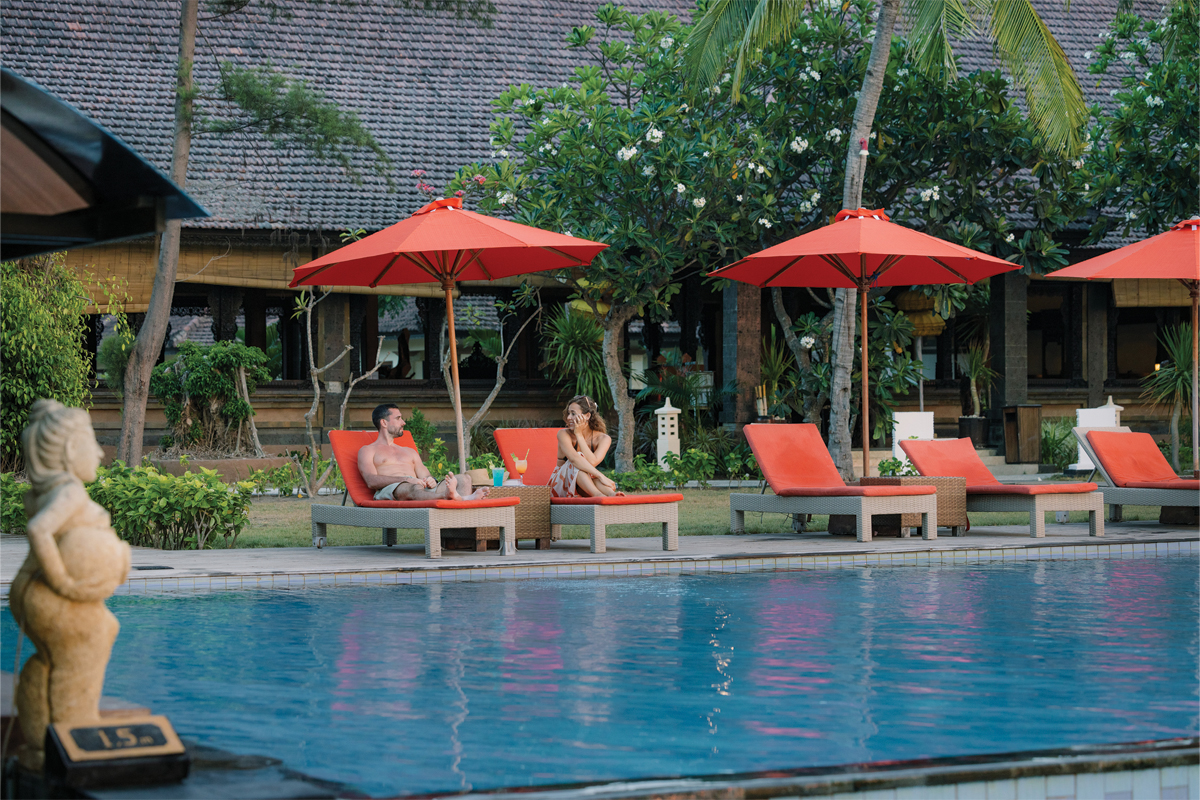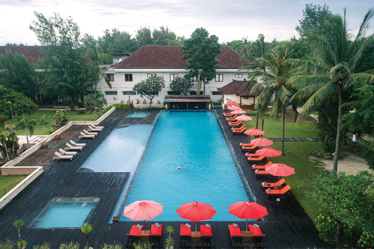 Located on the quieter western coast of Gili Trawangan, Hotel Ombak Sunset offers a relaxed island retreat celebrated for its unobstructed views of Mount Agung. The resort reflects Indonesian craftsmanship through detailed wood carvings across its range of accommodation, from the intimate Island Bungalows to the private Akoya Pool Villas. Guests may spend their days by the 40-metre swimming pool with Jacuzzi, or enjoy restorative treatments at Spa by Gilimo. Dining is centred at Datu Restaurant, where Eastern and Western dishes are presented alongside an extensive daily breakfast selection. Arriving via the resort’s distinctive yellow speedboats sets the tone for a stay defined by ease and character. As the sun begins to set, Hotel Ombak Sunset reveals its most memorable moments, where island living unfolds against a dramatic natural backdrop.