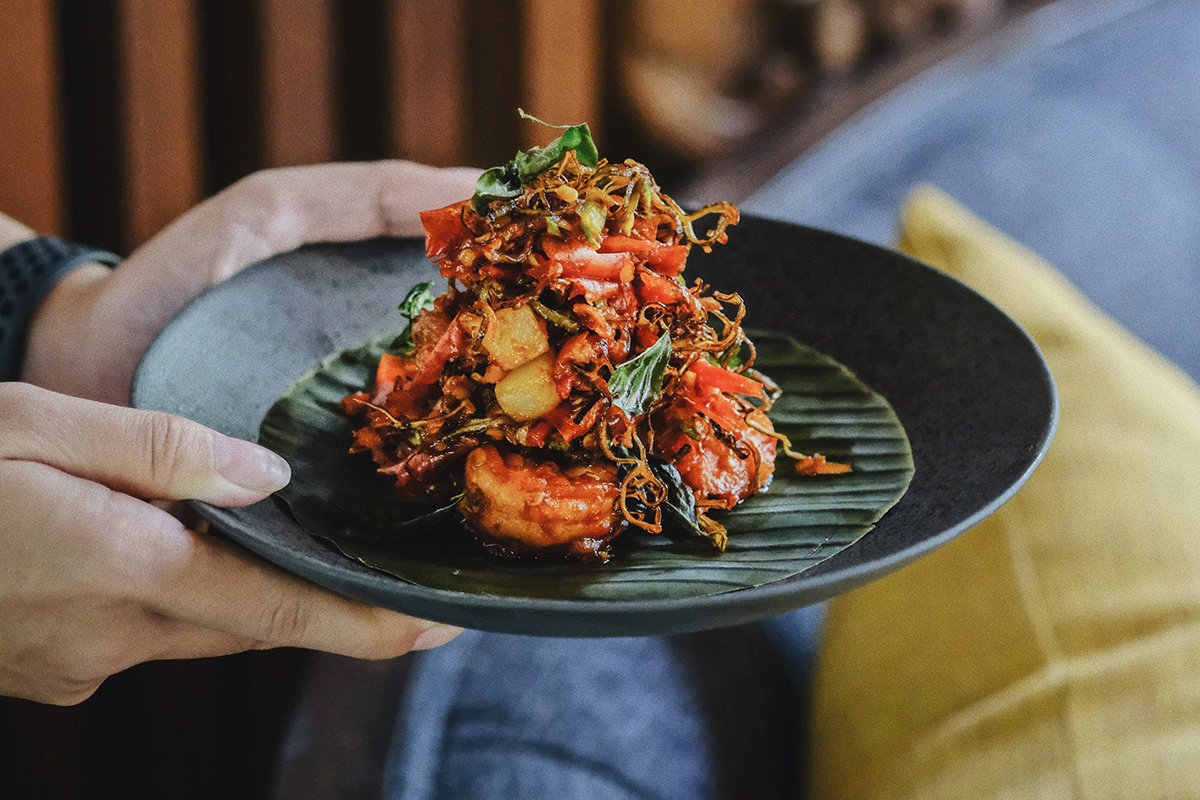 Nature is a marvel of beauty, and Lumbung Restaurant embraces that, situated side by side with the forested landscapes of Ubud. True to its name, a wooden structure resembling a barn welcomes diners into its elegant atmosphere defined by warm woods, stones, and moody lighting, complete with glass walls that frame swaying greenery. Those who wish to be closer to the verdant scenery can opt for the alfresco seating, set on a balcony next to a majestic waterfall. The gorgeous views precede equally stunning dishes, a lineup of Indonesian creations from cultures across the archipelago, including signature offerings like bebek betutu and an ice rujak-inspired cocktail.