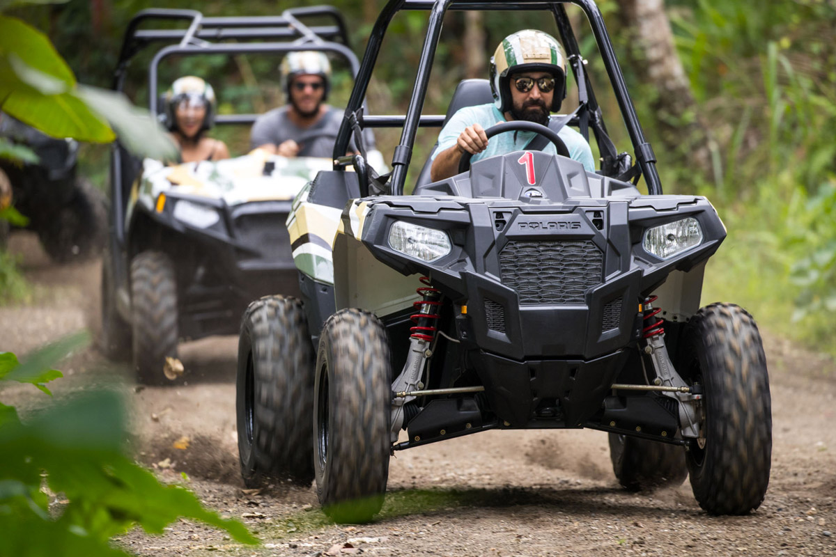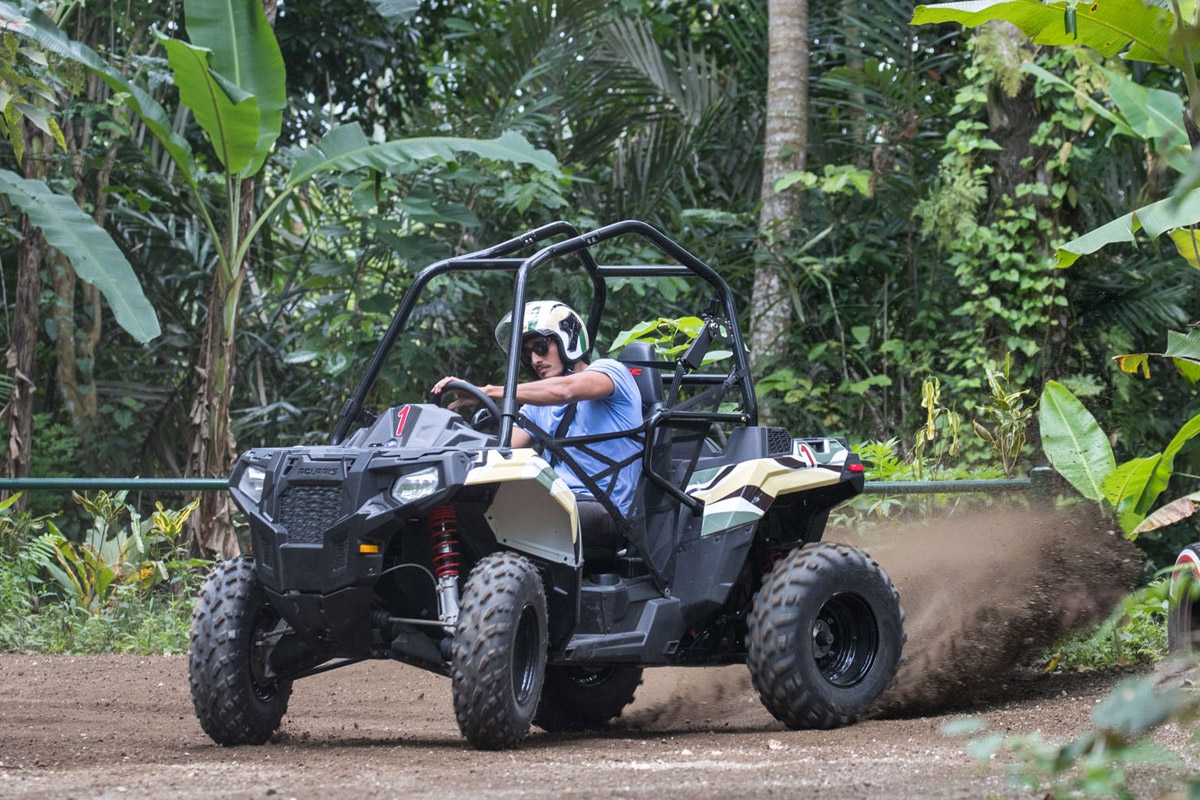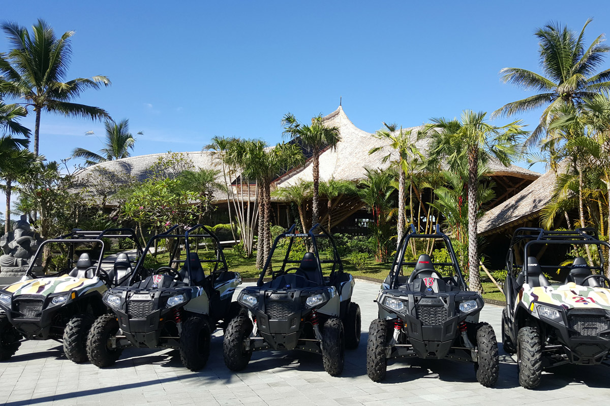 Meskipun terkenal dengan permainan air, pemburu adrenalin yang lebih menyukai aktivitas di darat dapat mengandalkan Mason Jungle Buggies. Pengendara dapat memilih antara Polaris ACE dengan satu tempat duduk atau Polaris RZR bagi dua orang untuk menaklukkan jalur ATV pertama dan satu-satunya yang dibangun khusus di Bali. Membentang sepanjang 4,5km, jalur ini berkelok-kelok melalui jalan tanah berhutan, memungkinkan para pencari sensasi untuk meluncur dan melaju dengan mudah dan aman di tengah angin segar dataran tinggi Ubud. Terletak di kompleks yang sama dengan Mason Chocolate Factory dan Koko Bambu Restaurant, lokasinya memberikan transisi yang mudah untuk mengisi perut setelah sesi yang mendebarkan.