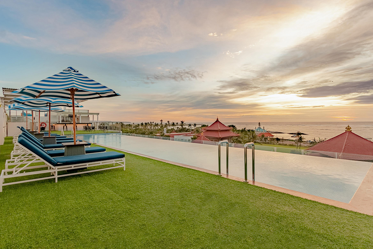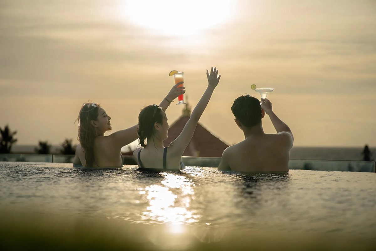 Berendam di kolam renang dengan pemandangan menghadap Samudra Hindia yang luas identik dengan liburan tropis. Rooftop Bar di Holiday Inn Express Baruna Bali melengkapi pengalaman tersebut dengan berbagai camilan lezat dan minuman dingin, menjaga keseruan sepanjang hari. Camilan ringan seperti roti bawang putih dan gyoza ayam menawarkan kudapan untuk dinikmati di tepi kolam, sementara hidangan yang lebih mengenyangkan seperti sandwich, nasi, burger, pasta, dan pizza untuk mengisi perut setelah berenang. Selain itu, hidangan penutup yang lezat, koktail dan mocktail yang kreatif, serta minuman sehat memastikan setiap kunjungan berakhir dengan manis.