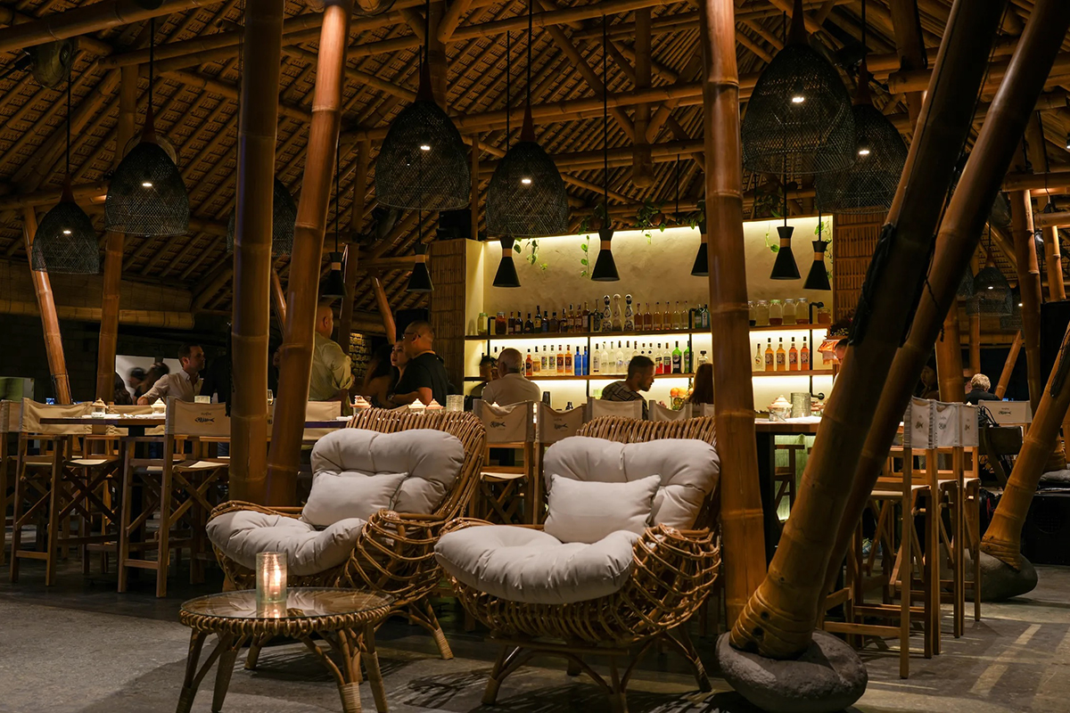 For more than 15 years, Sardine by K Club has stood as one of Bali’s most recognisable dining venues, consistently ranked among the best seafood restaurants in Seminyak. Its reputation rests on a clear philosophy: pairing the island’s freshest seafood with classic French culinary traditions. Each day begins with catches brought directly from Bali’s surrounding waters. The kitchen transforms these ingredients with French finesse, resulting in signature dishes such as grilled sardines, coconut clam spaghetti, and Indian Ocean lobster. Diners can enjoy these flavours in an open-air dining room crafted with natural elements and overlooking rice fields. This setting has made Sardine a romantic choice in Seminyak, especially for couples seeking an intimate evening.