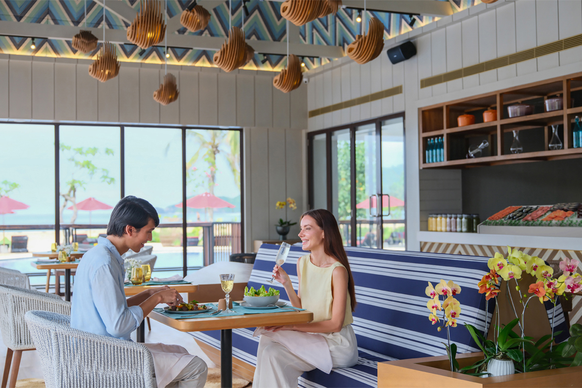 Sebagai sebuah pulau, Lombok secara alami menempatkan makanan laut sebagai jantung kulinernya. Inilah fondasi yang menjadi dasar suguhan Sgara Seafood Restaurant, mulai dari pemandangan Samudra Hindia yang menakjubkan hingga menu yang berpusat pada hasil tangkapan segar dari perairan tersebut. Interiornya pun terinspirasi dari lingkungan pesisirnya, dengan panel kayu putih, nuansa biru, dan aksen rotan yang dapat disandingkan dengan kota-kota nelayan di New England. Menunya menawarkan hasil tangkapan segar yang diolah dengan teknik memasak dan cita rasa Italia dan Indonesia, seperti 3 Ways Oysters ala Sisilia dan Kuta Mandalika Jumbo Prawns yang disiram saus gulai Lombok.