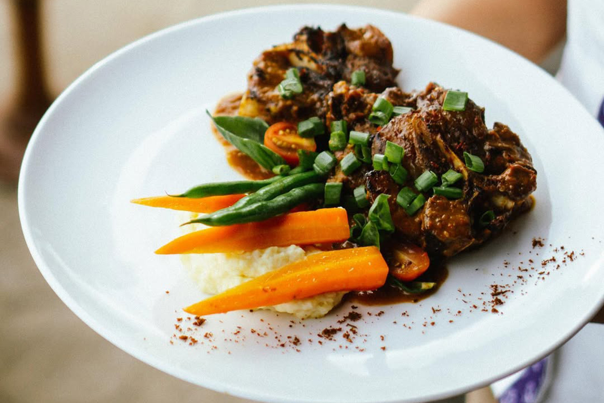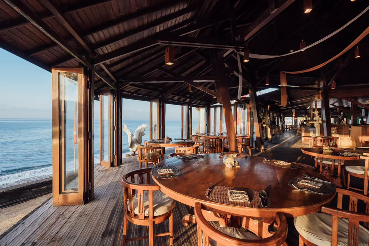 “Oceanfront dining featuring fresh seafood and Balinese charm”