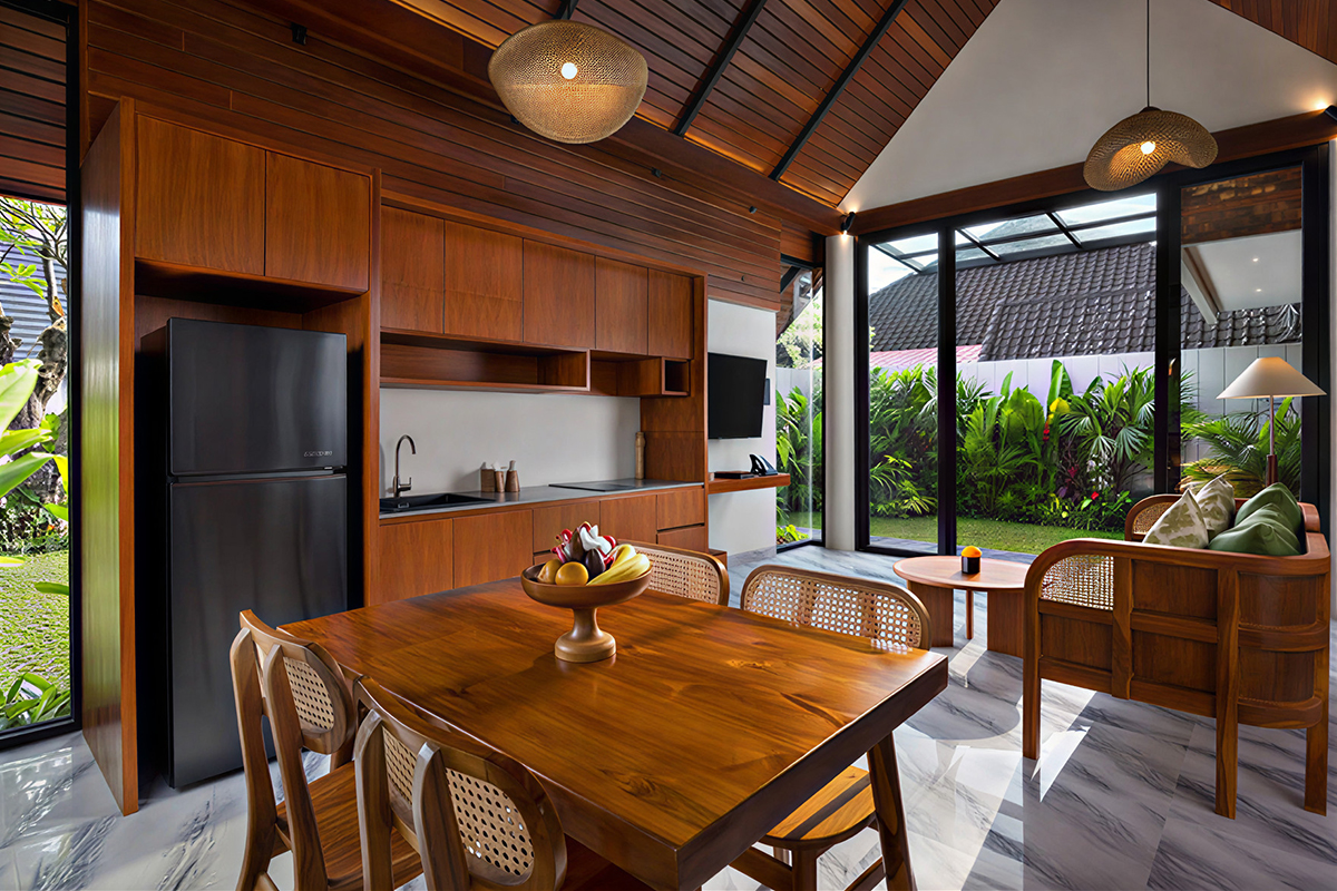 An escape to the idyllic nature doesn’t have to come with abandoning modern comforts. Unagi Mas Villas exemplifies this well, setting its chic upscale villas among the lush oasis of Ubud’s greenery. Six pool villas with up to three bedrooms welcome guests who visit with a larger crowd, making it an ideal choice for families and friend groups. Each abode is equipped with modern kitchens that turn meals into shared moments, while semi-outdoor bathrooms allow guests to have thoughtful, quiet moments of their own against natural landscapes. Its lineup of cultural experiences and excursions also ensures that there’s no shortage of fun for vacationers.